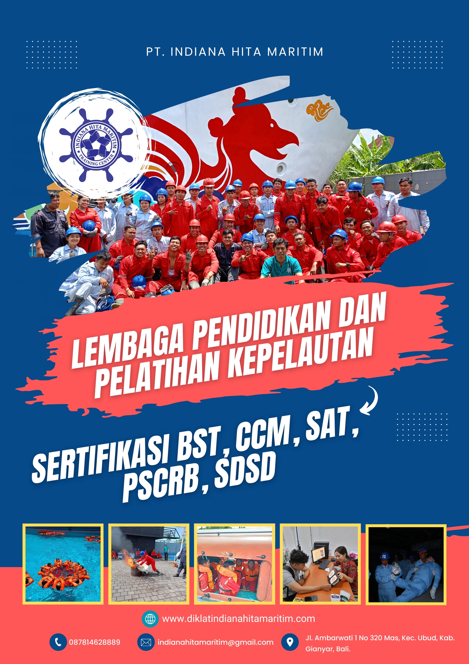 PT. INDIANA HITA MARITIM adalah Lembaga Penyelenggara Pelatihan Keselamatan bagi para pelaut, Kapal Pesiar, Kapal Cargo, Kapal Ikan , sesuai Standard Nasional dan Internasional.
